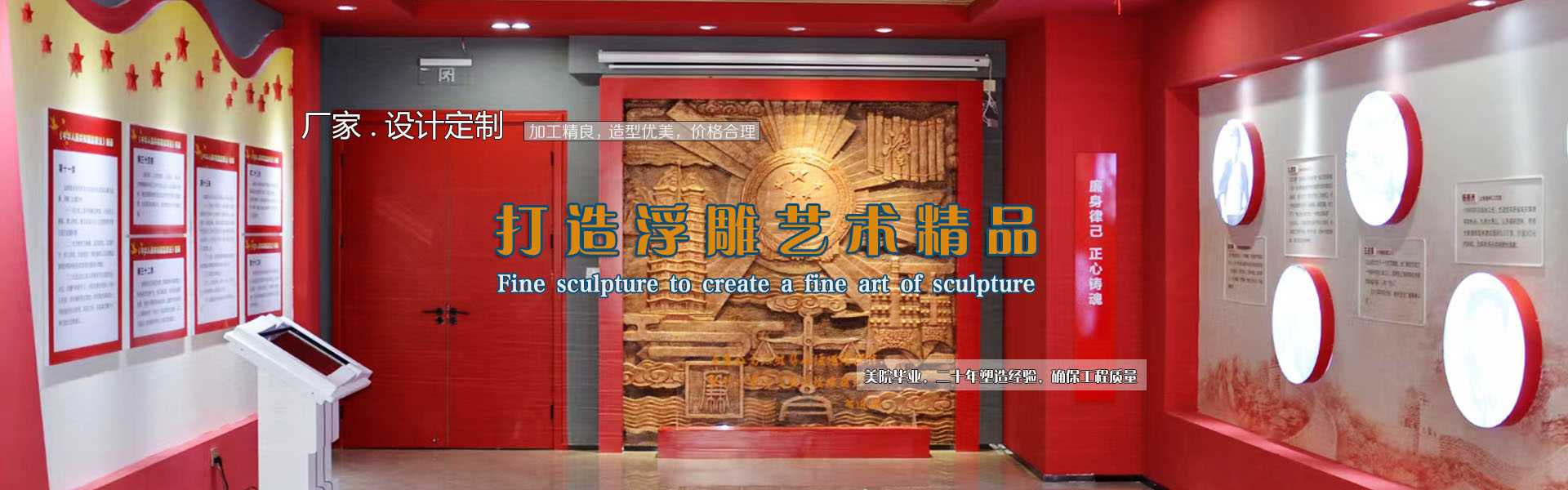 查看更多產品 + 電話:15978409299金蘭草浮雕是一家專業的玻璃鋼浮雕、鍛銅浮雕、鑄銅浮雕、不銹鋼浮雕、砂巖浮雕、石材浮雕、鐵藝浮雕、水泥浮雕等設計與施工的雕塑藝術企業,專注于學校浮雕、公園浮雕、廣場浮雕、博物館浮雕、展覽館浮雕、法院浮雕、景區浮雕、醫院浮雕、部隊浮雕、大廳浮雕、外墻浮雕、護坡浮雕等,服務社會,為廣大業主朋友們設計制作出精品浮雕。企業自成立以來,一直致力于高水準浮雕的設計與施工,真心的服務,力求讓每一位客戶滿意。多年來,公司服務全國,業績遍布各地,得到眾多客戶的肯定。 公司秉承對客戶負責的原則,堅持原創設計,堅持品質,堅持每一件浮雕作品不僅僅要打動客戶,更要打動自己。讓客戶放心,對自己負責,是公司始終堅持的方針。 展望未來,金蘭浮雕將以更加開放的胸懷迎接發(fā)展中的挑戰(zhàn)和機遇,“開拓創新,合作共贏,追求卓越”,與社會各界朋友一起攜手共創輝煌! 公司自成立以來,一直致力于高水準浮雕、雕塑、景觀設計與施工,真心的服務,力求讓每一位客戶滿意。多年來,公司服務全國,業績遍布各地,得到眾多客戶的肯定。 公司秉承對客戶負責的原則,堅持原創設計,堅持品質,堅持每一件雕塑作品不僅僅要打動客戶,更要打動自己。讓客戶放心,對自己負責,是公司始終堅持的方針。 展望未來,金蘭園林景觀將以更加開放的 ...